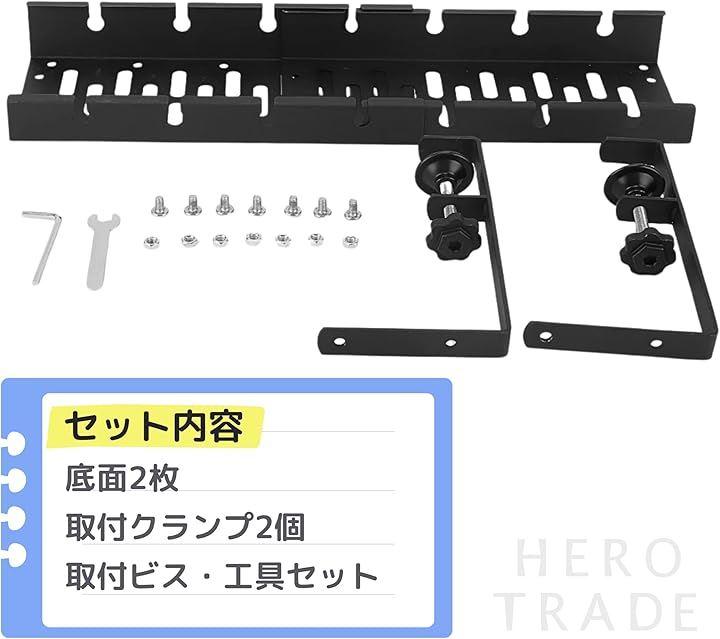 サイズ:幅28.5cm-54.5cm 奥行12cm高さ3.3cm クランプ長19.5cm 固定幅4.5cmまで