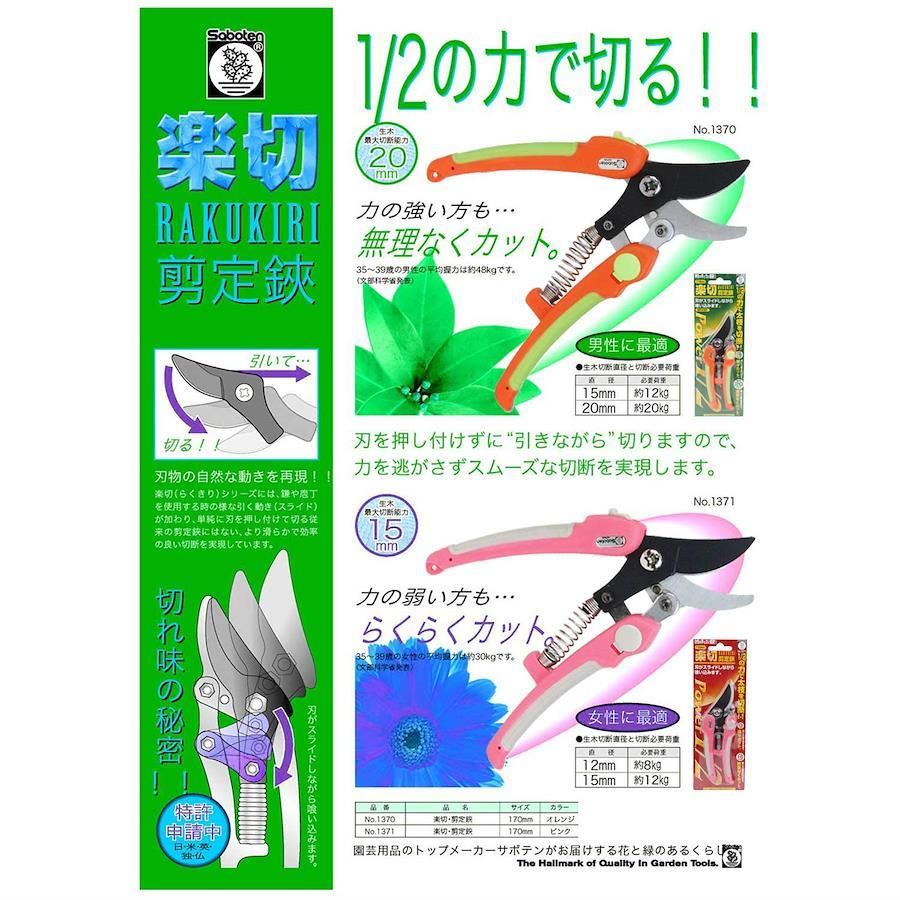 3営業日以内に発送≪新品未開封品≫:サボテン 楽切剪定鋏 女性用 【1/2の力で太枝を切断】 切断能力 15mm No.1371