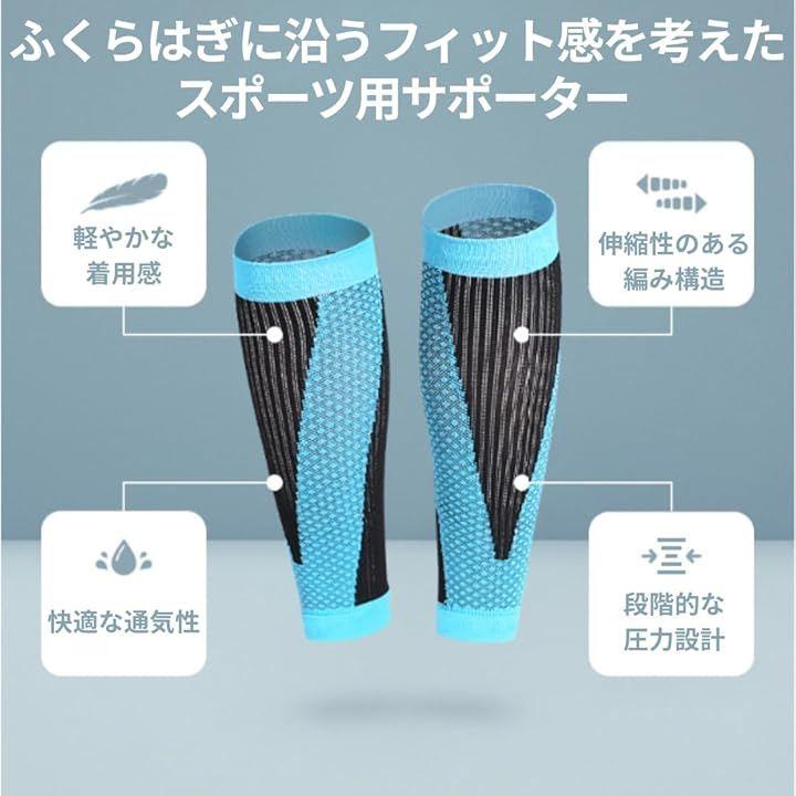 「ふくらはぎ サポーター スポーツ用・左右2枚組」 本商品は、ランニングやバスケットボール、登山など、アクティブな動きをサポートするために設計されたふくらはぎ用サポーターです。