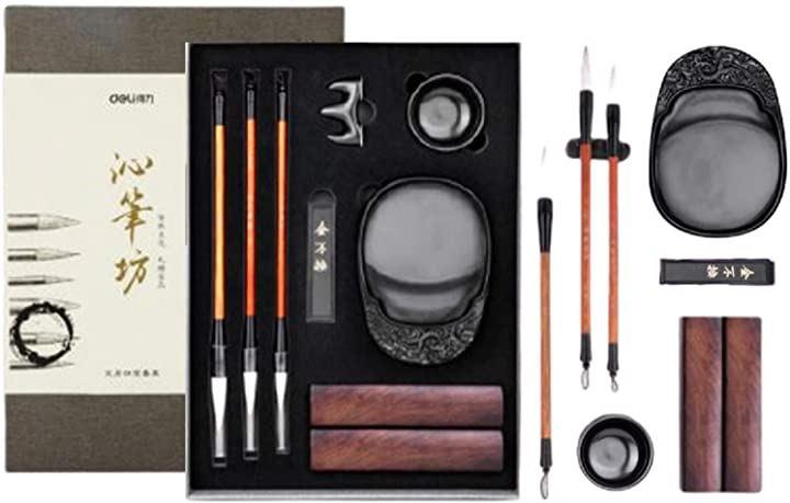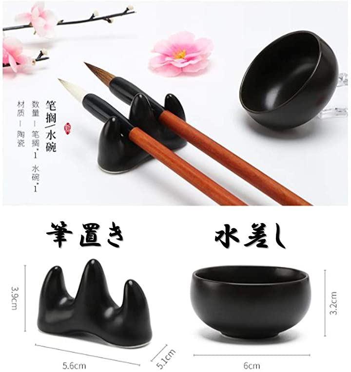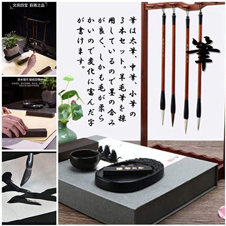 ・書道に必要な文房四宝(筆、硯、墨、紙)の中、紙以外が揃い、さらに文鎮、筆置き、水差しも付属されているので、紙を揃えればすぐに書道が始められます。