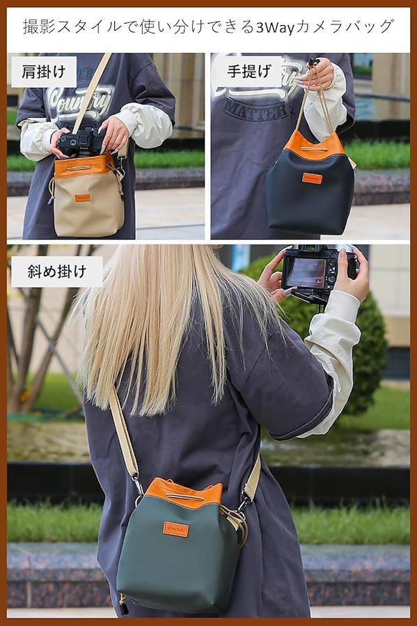 大切なカメラをしっかり保護しながら持ち運べる、巾着型のショルダーカメラバッグです。