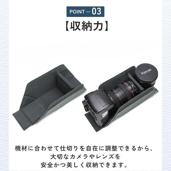 「収納力」機材に合わせて仕切りを自在に調整できるから、大切なカメラやレンズを安全かつ美しく収納できます。