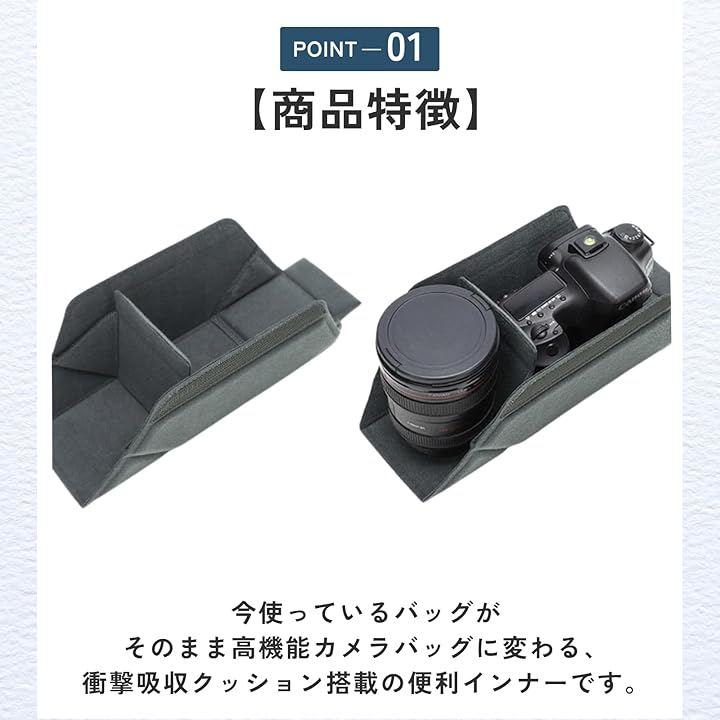 「商品特徴」今使っているバッグがそのまま高機能カメラバッグに変わる、衝撃吸収クッション搭載の便利インナーです。