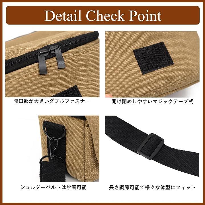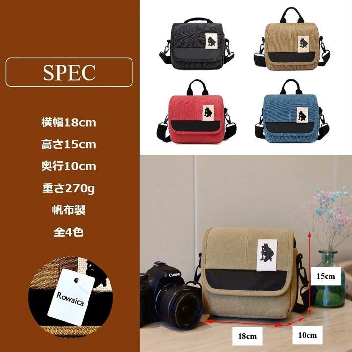 「大きさ」横幅18cmx奥行10cmx高さ15cm 「重さ」270グラム(ショルダーストラップを含む) 「カラー」ブラック、カーキ、ブルー、レッド 「主な素材」帆布