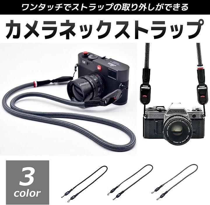 ワンタッチでストラップの取り外しができるカメラストラップです。