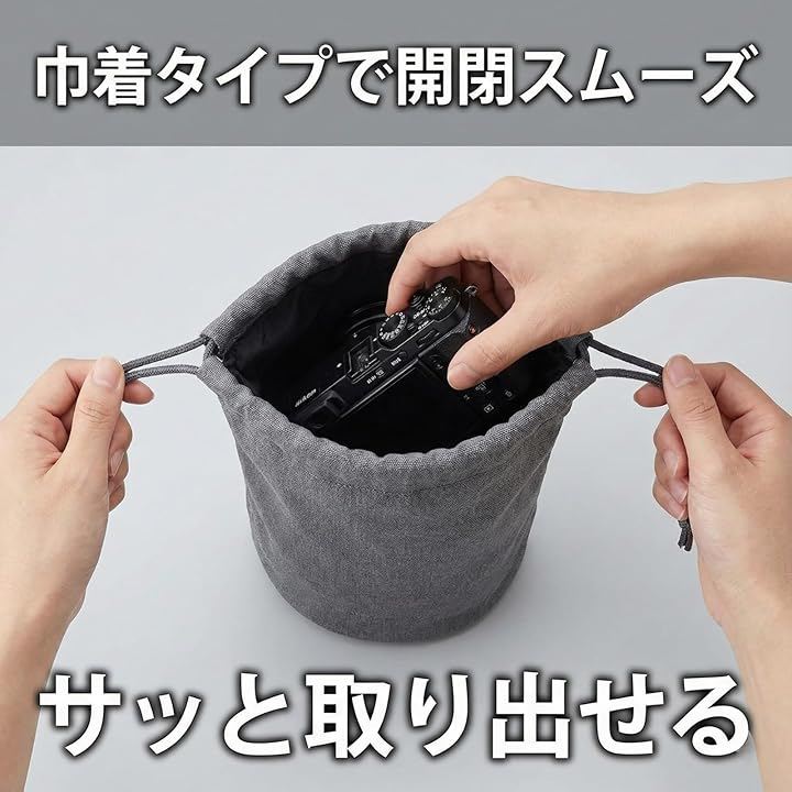 巾着式で開閉が簡単なため、必要な時に素早くカメラを取り出せます。