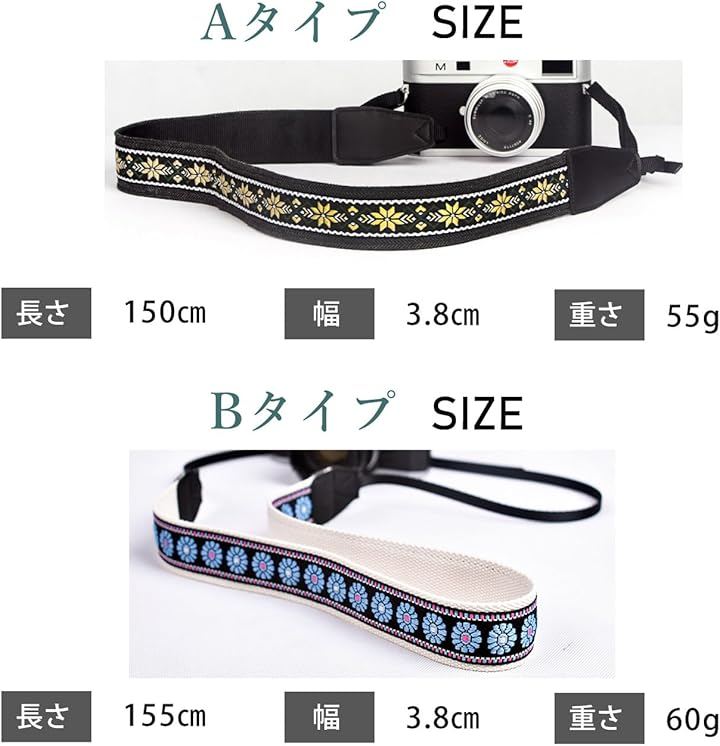 ボヘミアン・エスニック調デザインがおしゃれなカメラストラップで、普段使いから旅行・アウトドアまで幅広く活躍します。
