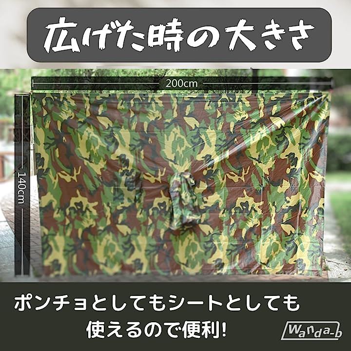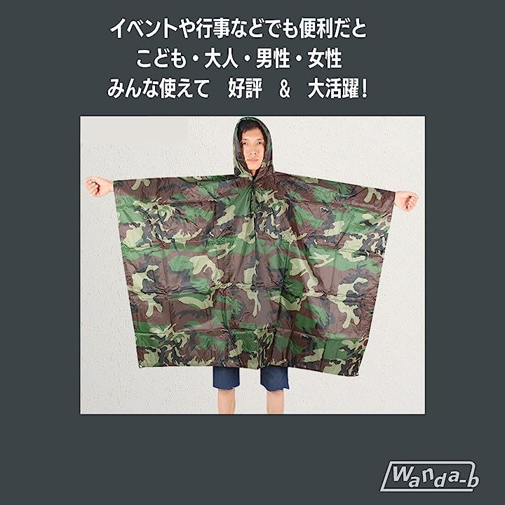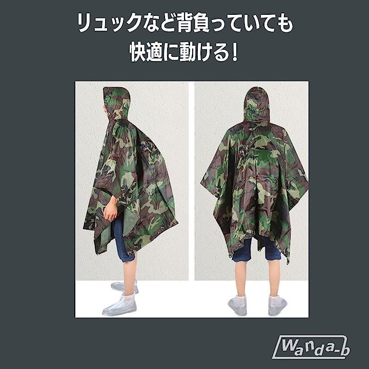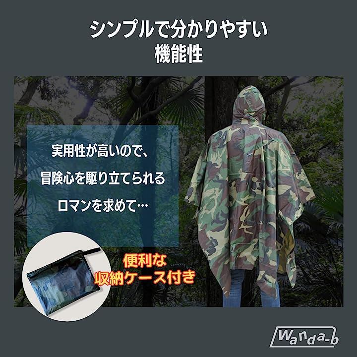 雨具としての機能に加え、迷彩柄のファッション性がさりげない演出をしてくれます。