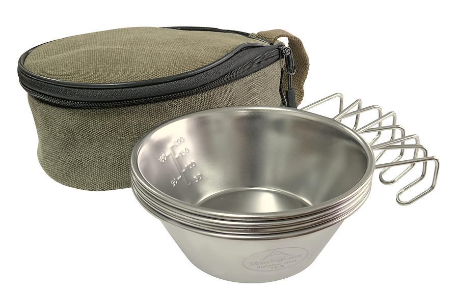 サイズ:約φ120×165×45(高さ)mm重量:約約72g/点満水容量:約310ml素材:18 "8ステンレスセット内容:シェラカップ 4点、帆布ケース