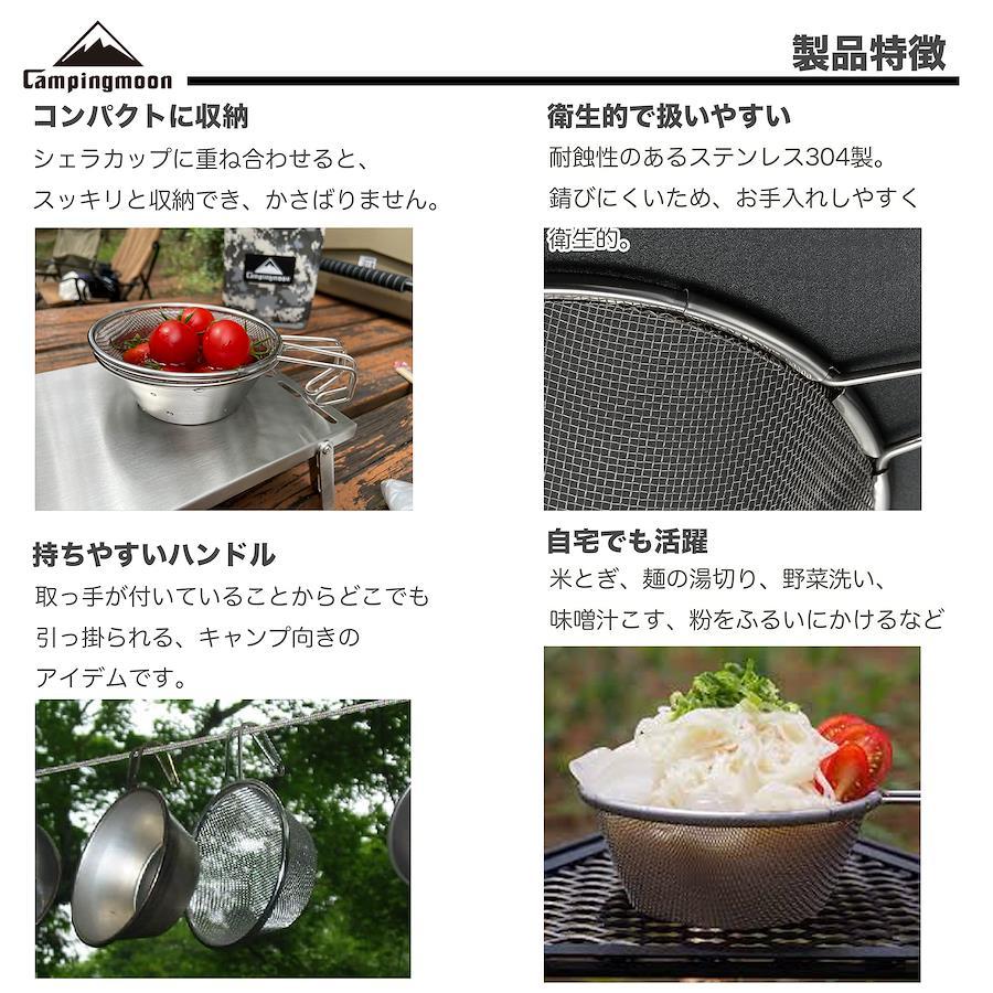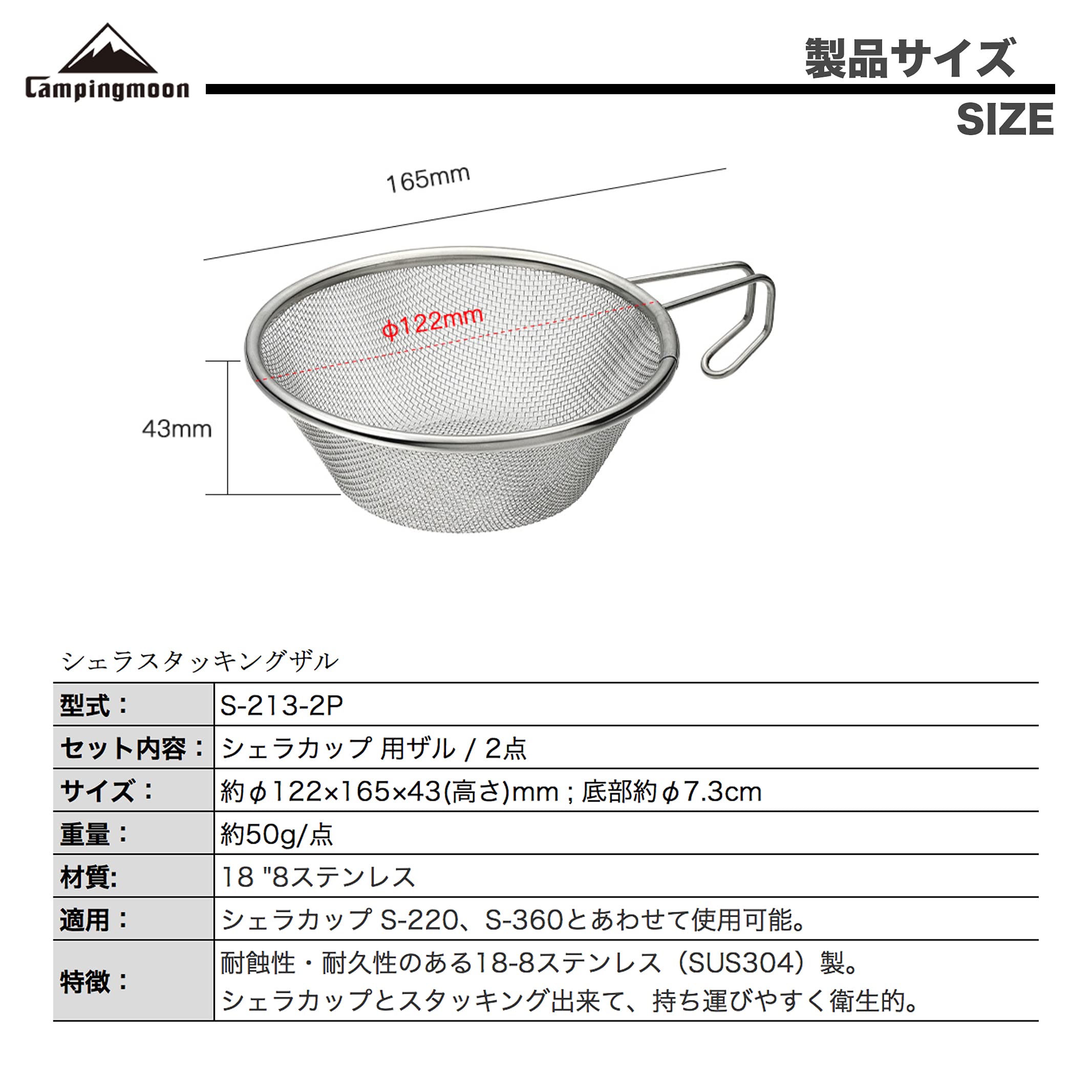 サイズ:約φ120×165×45(高さ)mm重量:約50g (2点約100g)容量:約310ml素材:18 "8ステンレスセット内容:シェラカップ型ザル 2点セット