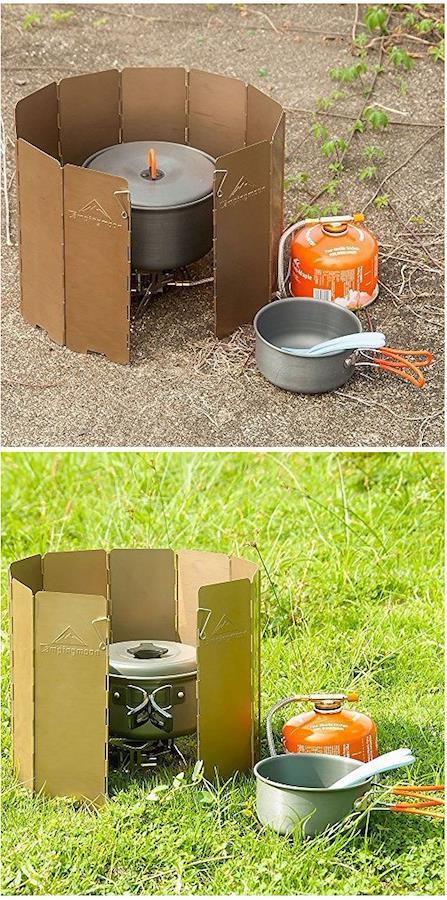 クッキング時に着火に困らないウインドスクリーン。カセットガスコンロ、アウトドアコンロ、クッカーの風よけにおすすめます