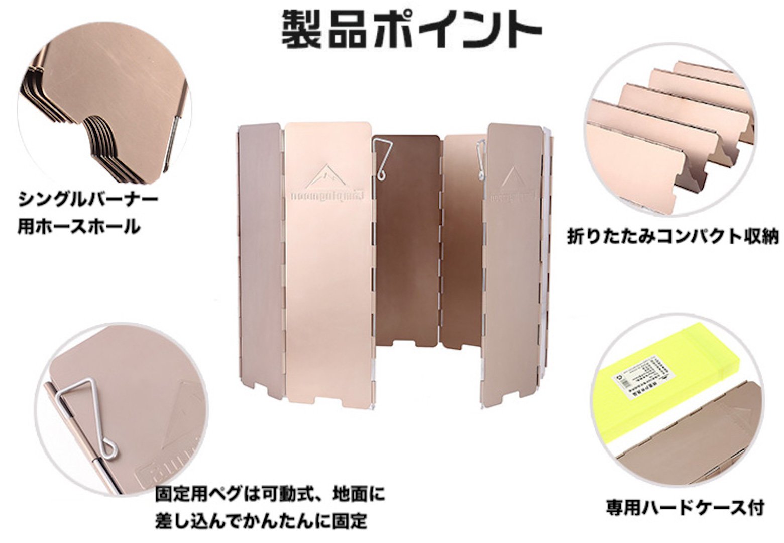 camping moon 風除板 ウインドスクリーン 折り畳み式 アルミ製 8枚のプレート