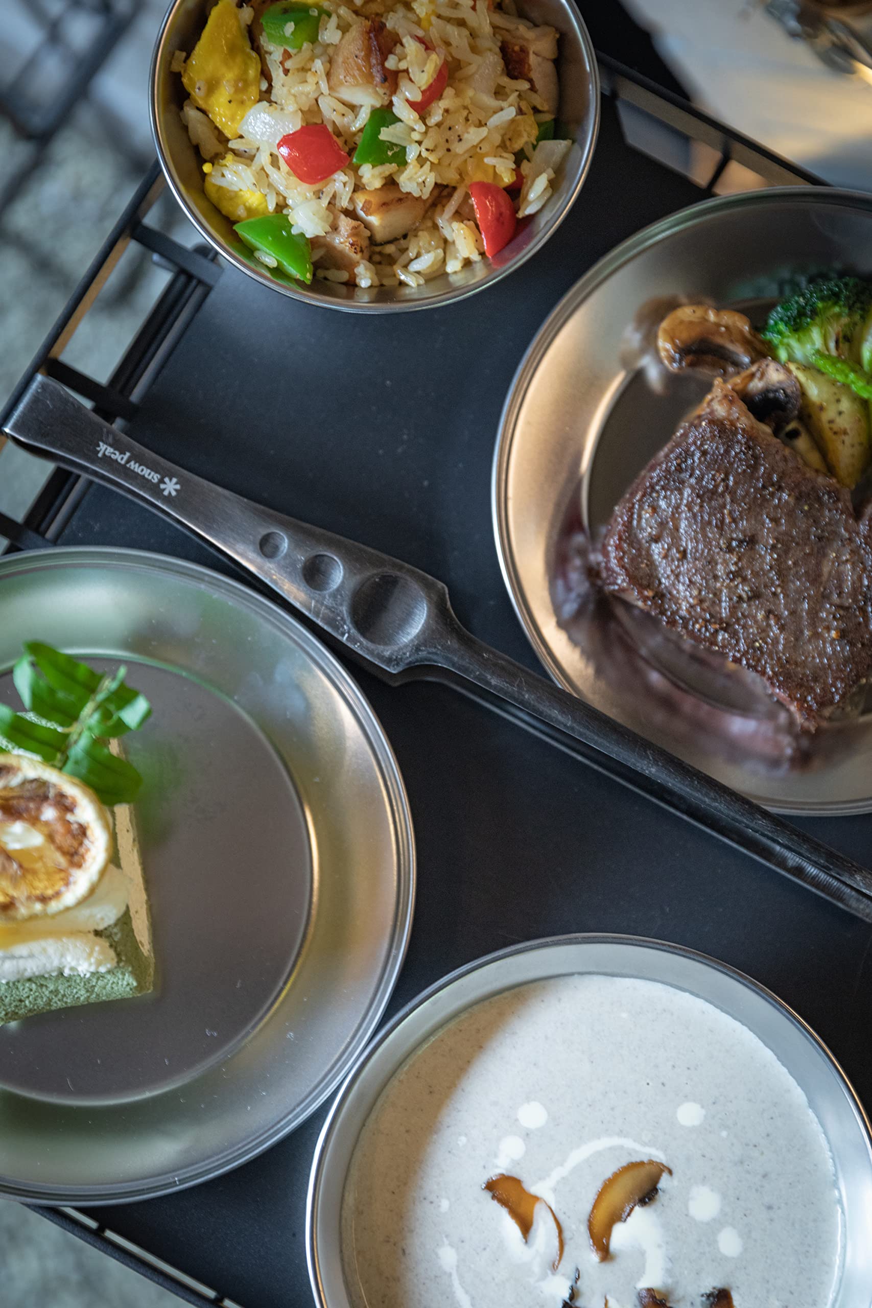 ■ブランド名:CAMPINGMOON■商品名:テーブルウェアーセット ■商品型番:S-395■カラー:シルバー■プレート/約φ175×18mm、デッシュ/約φ168×32mm、中ボール/約φ150×38mm、小ボール/約φ120×45mm■素材:Stainless steel Silver / ステンレス製 シルバー18-8ステンレス製エンボス(型押し)加工バージョン。必要な食器がすべてオールインワン収納可能な テーブルウェアセット。サイズや形状の異なる食器のパッキングは以外と場所を取り、収納スペースもある程度の広さが必要になります。大きさの異なる4種の食器の完璧なスタッキングを実現しました。素材のステンレスは、固く頑丈で、錆びず、傷や汚れが付きづらく片付けも簡単です、アルミニウムに比べて熱伝導率が低く、食器の縁が熱くなりにくい特性を持っています。清廉されたデザインは口当り、持ち易さ、食べ易さを追求した機能美も備えています。【確認事項】※サイズは、おおよそになります。※熱で変色する場合がありますが使用には支障ありません。※モニター環境により画像の色合いが若干異なる場合がございます。ご了承ください。