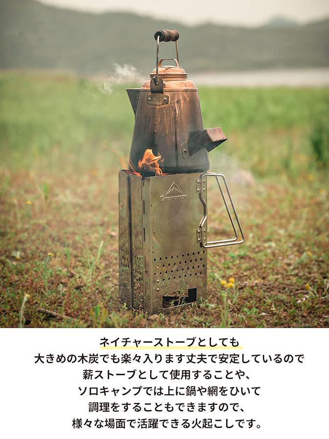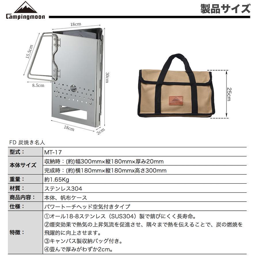 重量:(約)1.65kgサイズ:(約)組立てサイズ/180×180×300mm、収納サイズ/300×180×20mm材質:ステンレス仕様:トーチヘッドタイプの空気口付属品:帆布製収納ケース