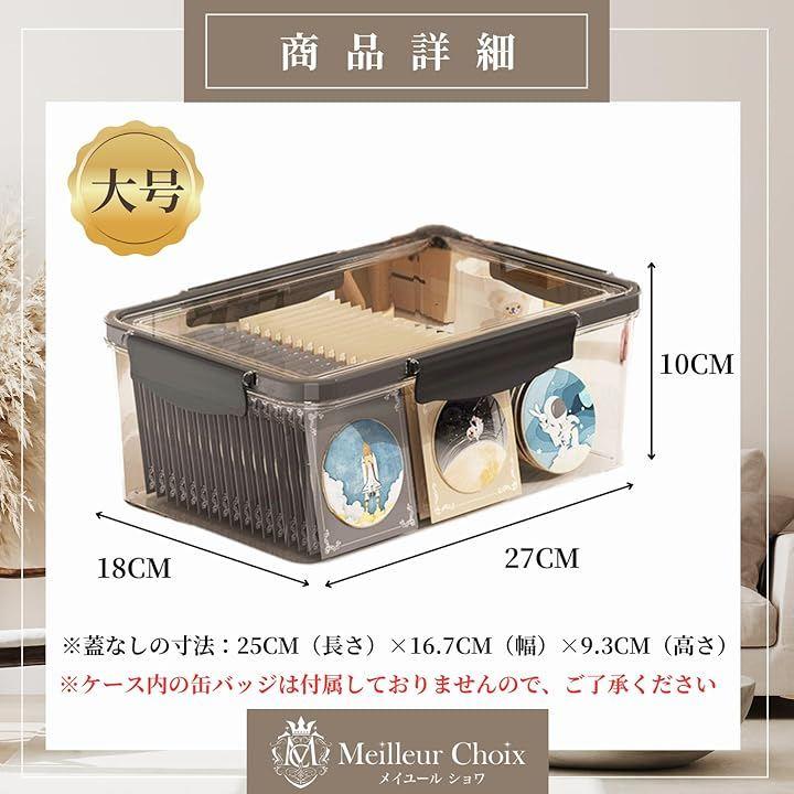 *小:幅18cmx奥行13cmx高さ7cm *中:幅21.5cmx奥行15.8cmx高さ8.5cm *大:幅27cmx奥行18cmx高さ10cm(75cm缶バッジ対応)