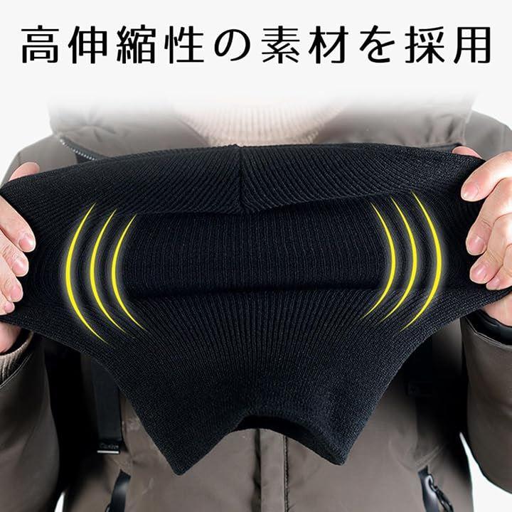 「商品説明」 ストレッチ性の高いニット素材を採用し、肌に密着するので冬の寒い日でも顔や首・頭を風から防いでくれます。