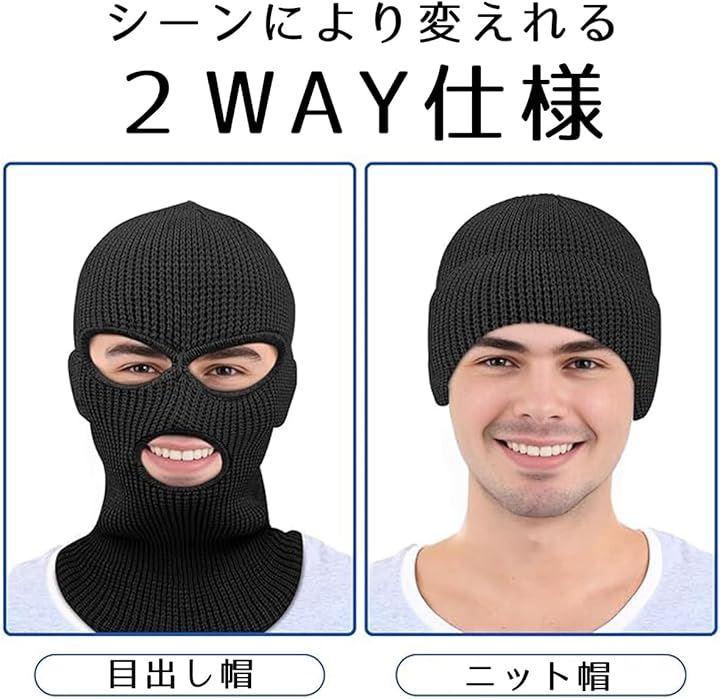 「用途」 バラクラバ(目出し帽)とニット帽、2通りの方法でお使いいただけるのでシーンによって使い分ける事が出来ます。