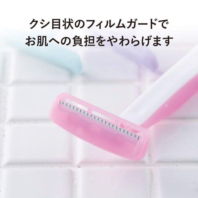 商品紹介女性用使い捨てカミソリ。淡いパステルトーンにバブル模様のおしゃれなデザイン。手にフィットするロングハンドル。肌に優しいフィルムガードを採用。使用上の注意ムダ毛剃り用のカミソリです。それ以外の目的に使用でください。お肌に合わない場合はご使用方法刃先をキャップにあてないよう、注意しながらカミソリを抜き差ししてください。