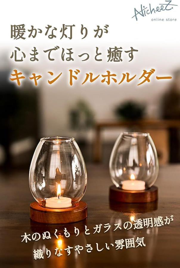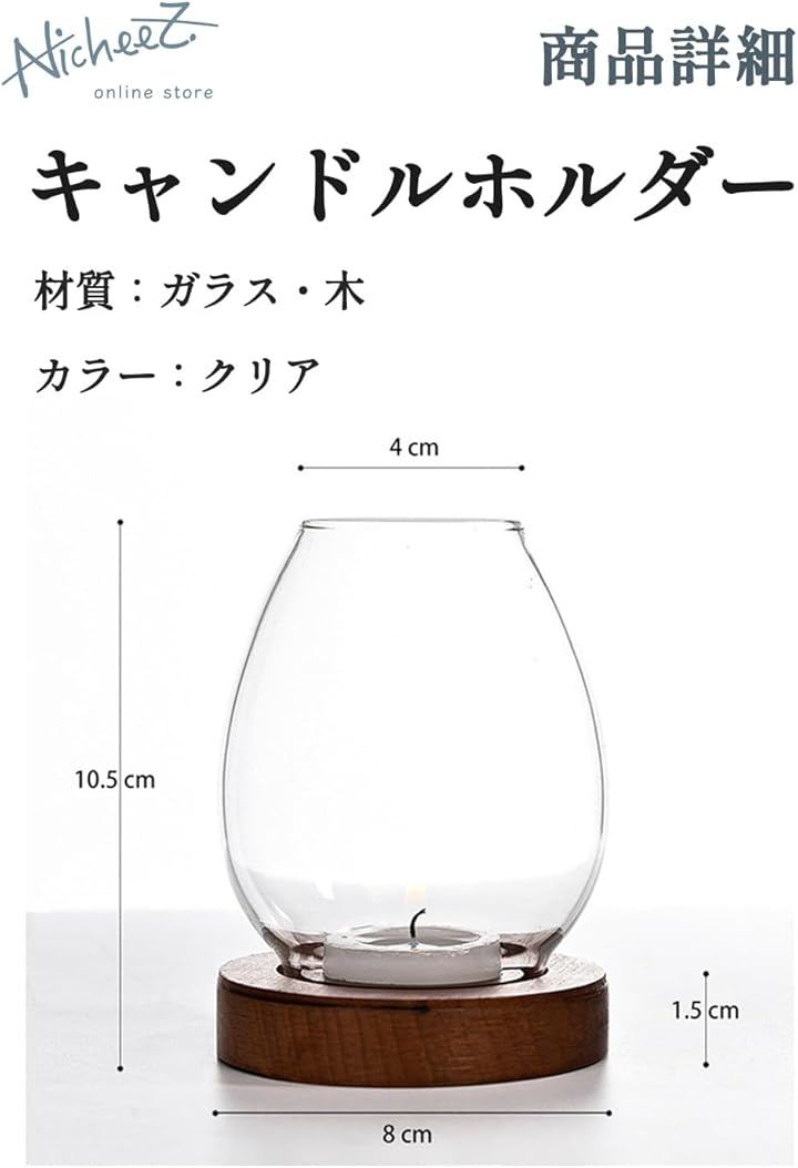 「商品内容」 キャンドルホルダー 材質:ガラス・木 カラー:クリア サイズ:台座直径/約8cm 台座高さ/約1.5cm 本体高さ/約10.5cm 上部直径/約4cm