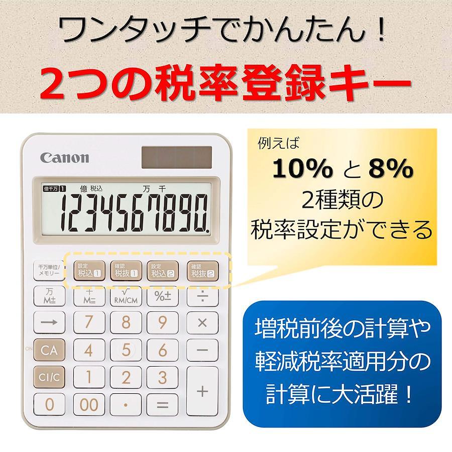6色の鮮やかなカラーバリエーションの10桁ミニ卓上モデル。女性ユーザーや、店舗にも好まれる「抗菌仕様」。千万単位機能搭載で、大きな桁も簡単入力。2つの税率登録機能搭載。