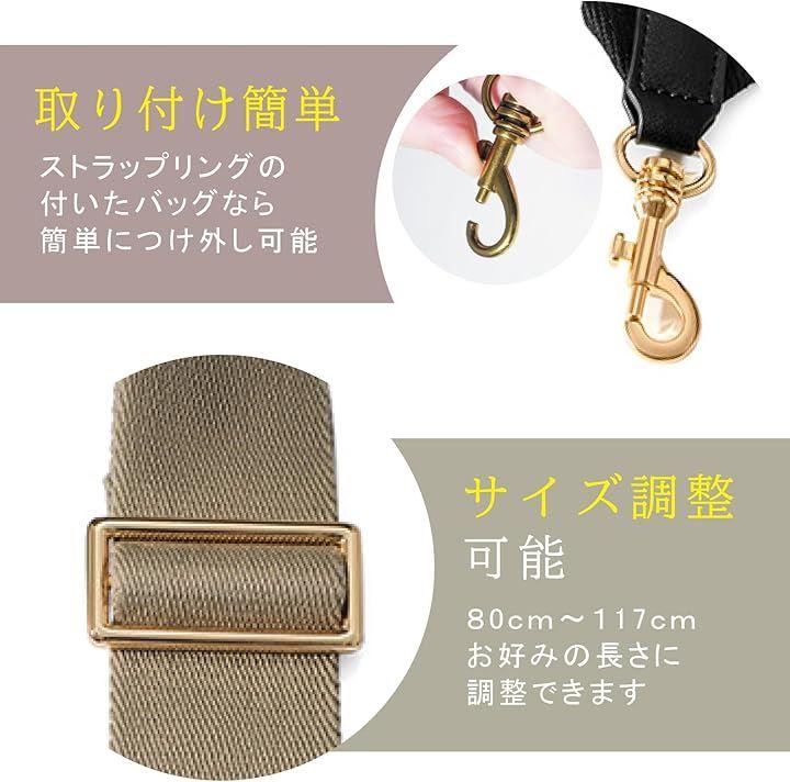 取り付けは金具を引っかけるだけで簡単。長さ調整可能で、どんなバッグにもぴったりフィットします。