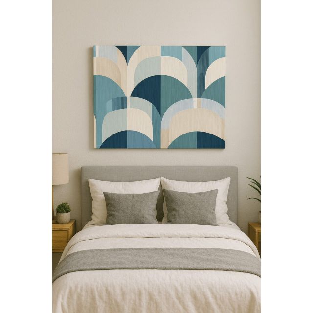 モダンなアートです。抽象的なアートは飾る場所を選びません。フレームのついていないパネル仕上げはシンプルでありながらも存在感があります。