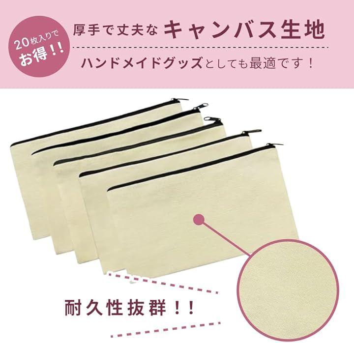 「シンプルなポーチ」キャンバスポーチセットは、全20枚の無地ポーチが揃っており、小物の整理整頓に最適です。