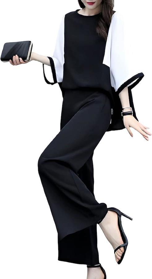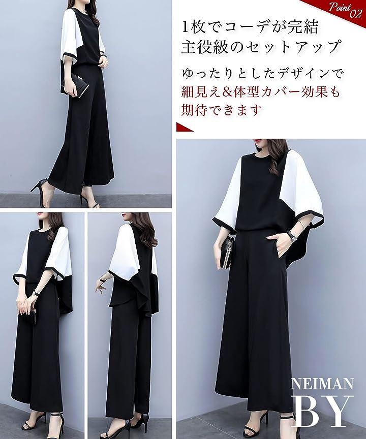 ゆったりした袖とワイドパンツで細見え&体型カバー効果も期待できます。