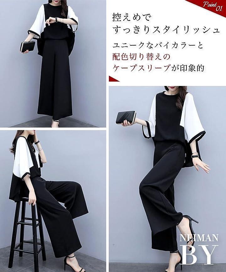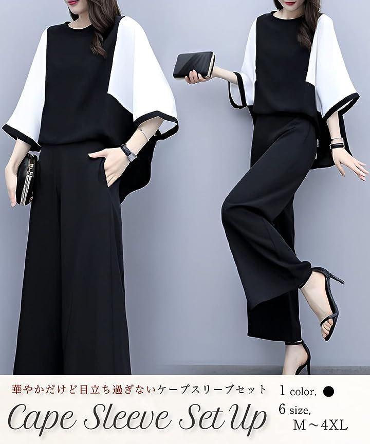 控えめですっきりスタイリッシュに見えるケープスリーブセットアップ。