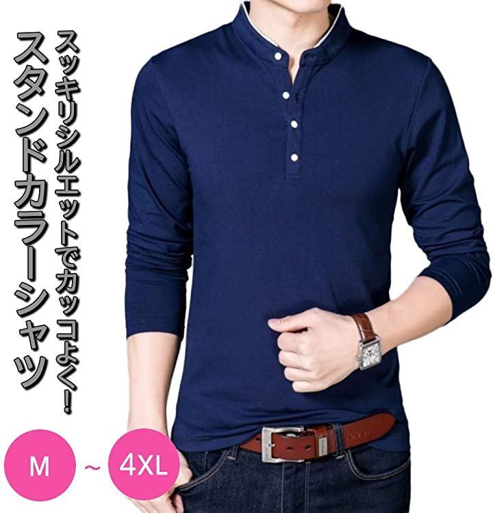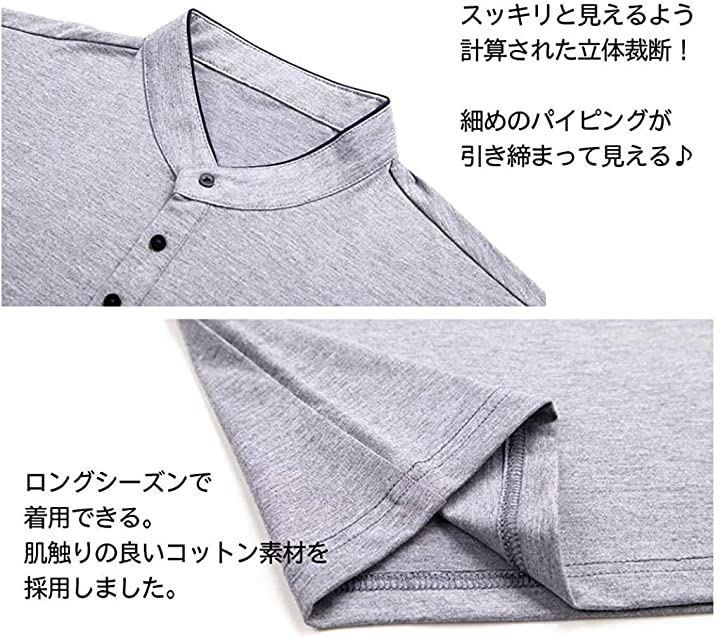 スッキリとしたスタンドカラーデザインのカットソーシャツです。