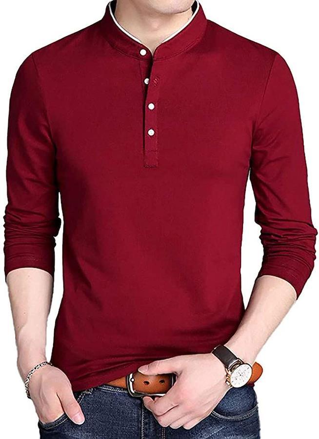 スッキリとしたスタンドカラーデザインのカットソーシャツです。