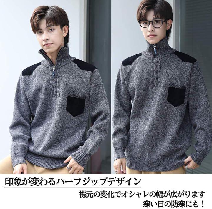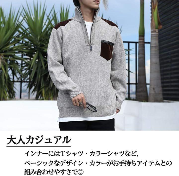 ブーツやスニーカーとの相性も抜群で、センス良くカジュアルなおしゃれを楽しめるハーフジップセーターです。