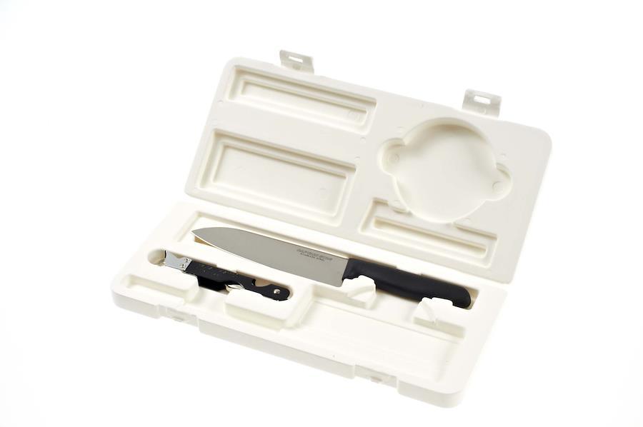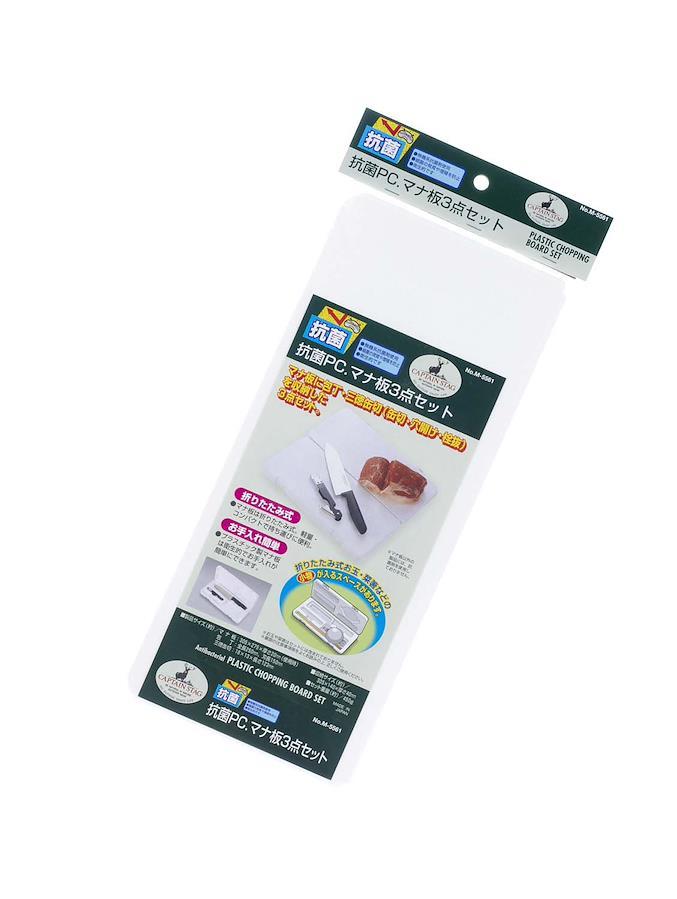 まな板に庖丁、三徳缶切を収納した3点セット。