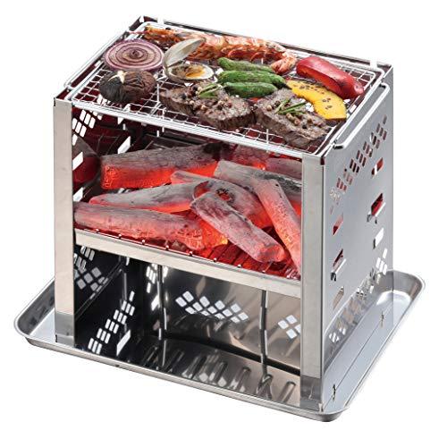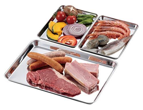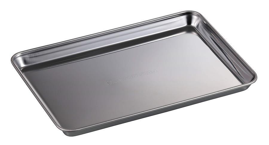 料理の下ごしらえに便利。UG-3274 BBQ ステンレス角型トレー(小)(別売り)と組み合わせて並べて使えます。衛生的なステンレス製。BBQの下ごしらえに便利。冷蔵庫やクーラーボックスでの一時保管に。カマドスマートグリルB5型や小型グリルの灰受けとして使えます。B5型が収納バッグごとトレーに収まります。