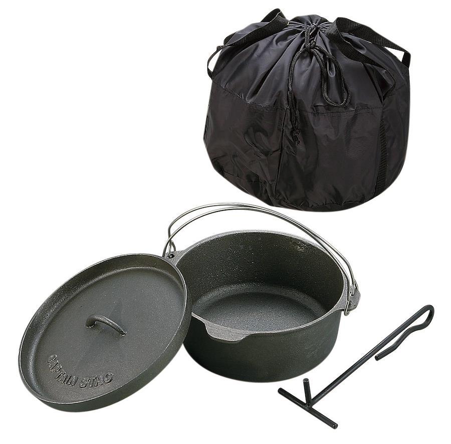 ダッチオーブン・リッドリフター、収納バックの3点セットです。オーブン/煮る/蒸す/炊く/蓋で焼く/スモーク、様々な調理に使用できます。シーズニング(初回のカラ焼き)は不要ですが、取扱説明書記載の手順で使用前のお手入れを行ってください。