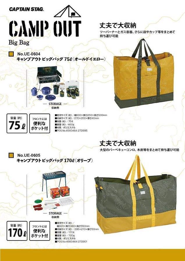 ●キャンプ道具を始め大型の荷物をタップリ収納できる便利なトート型バッグ●容量は約170Lと超大型●フロントには便利なポケット付