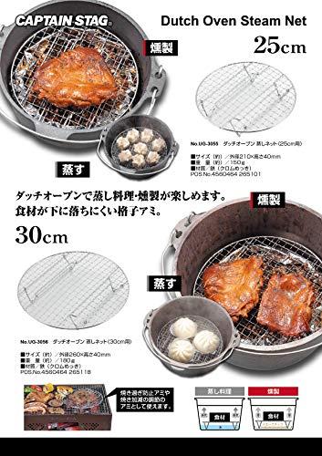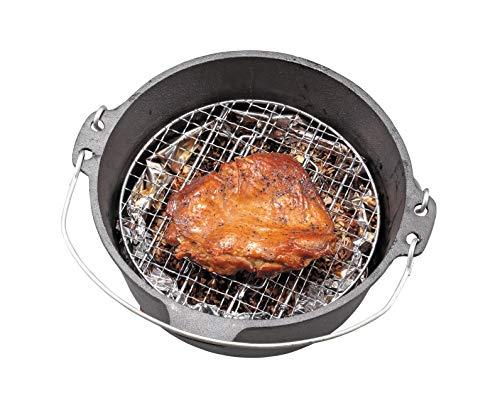 ダッチオーブンで蒸し料理・燻製が楽しめます。食材が下に落ちにくい格子アミ。バーベキューコンロのアミの上に置けば、焼き過ぎ防止アミや焼き加減の調節のアミとして使えます。