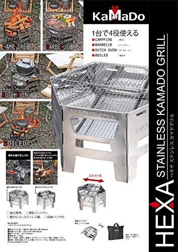 組立サイズ:(約)幅450×奥行390×高さ260mm、収納サイズ:(約)560×430×厚さ40mm、網サイズ:455×395mm、交換用バーベキュー網:M-6699/ヘキサ バーベキューアミ(別売)製品重量:(約)2.8kgセット内容:本体×1、底板×1、ゴトク×1、バーベキュー網×1、収納バッグ×1材質:本体・底板/ステンレス鋼、ゴトク・バーベキュー網/鉄(クロムめっき)原産国:中国部門名: ユニセックス大人