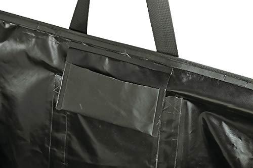防水仕様のターポリンバッグ。大型の荷物も楽々収納できる。内側ポケット付き。