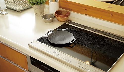 特徴:ふっ素加工(少量の油で調理できてお手入れ簡単。)仕様:オール熱源対応「ガス火・焚き火」「IH」「シーズヒータ」「ハロゲンヒータ」「エンクロヒータ」「ラジエントヒータ」GAS・100V・200Vの加熱器具に使用できます。※レジャー用直結型ガスコンロでは使用できません。