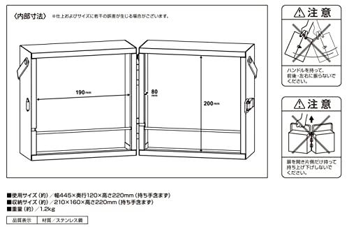 使用サイズ:(約)幅445×奥行120×高さ220mm(持ち手含まず)、内部寸法:(約)幅190×奥行80×高さ200mm収納サイズ:(約)210×160×高さ220mm製品重量:(約)1.2kg材質:ステンレス鋼原産国:中国