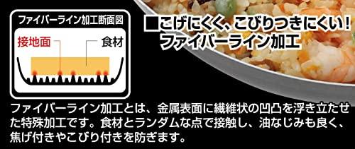 こげにくく、こびりつきにくい!ファイバーライン加工※ファイバーライン加工とは、金属表面に繊維状の凹凸を浮き立たせた特殊加工です。食材とランダムな点で接触し、油なじみも良く、焦げ付きやこびり付きを防ぎます。