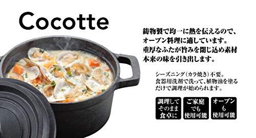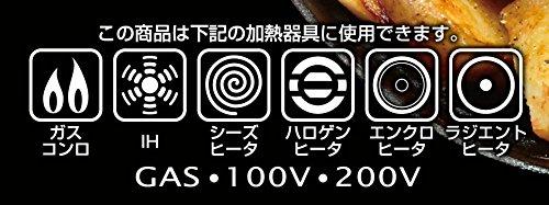 製品サイズ:(約)幅240×奥行180×高さ130mm、製品重量:(約)3kg満水容量:(約)1.6L材質:本体・ふた/鋳物物、つまみ/ステンレス鋼、表面加工/油焼き(焼付塗装)原産国:中国仕様:シーズニング不要・「オーブン」対応・「ガス」「IH」「シーズヒータ」「ハロゲンヒータ」「エンクロヒータ」「ラジエントヒータ」GAS・100V・200Vの加熱器具に使用できます。
