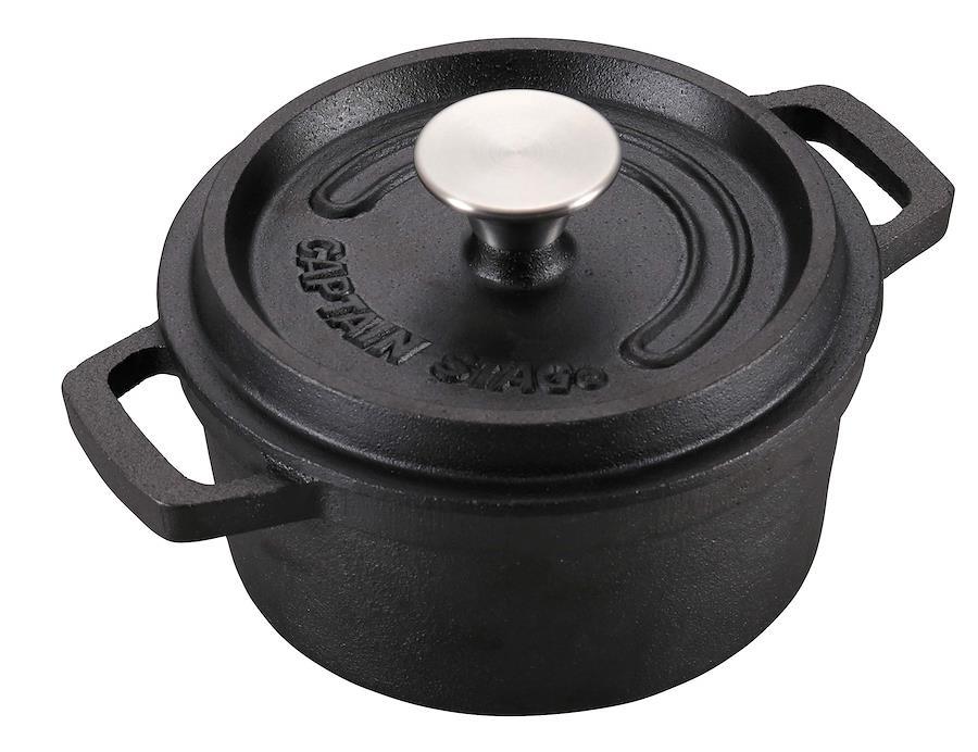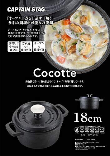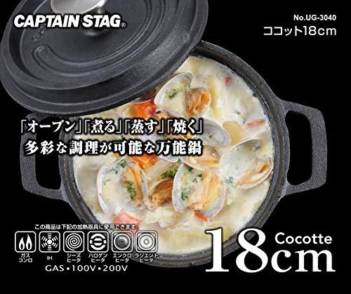 Captain Stag Cocotte Dutch Oven 18cm Capacity 1.6L Cast Iron No Seasoning Required Compatible with Gas, IH and Oven UG-3040