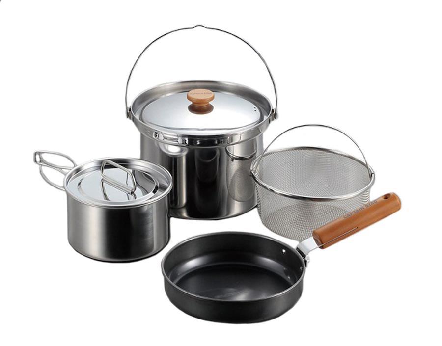 原産国:日本収納サイズ:(約)247×230×高さ181mmセット重量:(約)2kgセット内容:20cm鍋×1、16cm鍋×1、フライパン20cm×1、取っ手×1、バスケット×1、収納バッグ×1材質:鍋/ステンレス鋼(クロム18%),フライパン/鉄(表面加工=クリアラッカー塗装),フライパン(取っ手)/天然木・ステンレス鋼(クロム18%)、バスケット/ステンレス鋼(クロム18%・ニッケル8%)注意:レンタル等による貸出し、オークション等による転売や中古販売、及び譲渡によって発生した事故・損傷・劣化・損害・事故などにつきましては、一切責任を負いかねますので予めご了承ください。