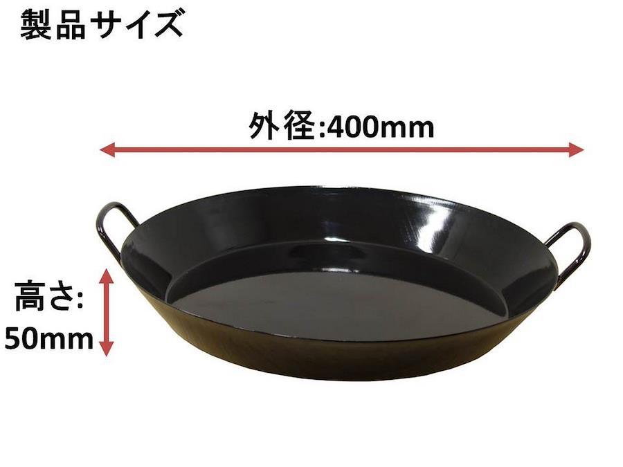 製品サイズ:(約)外径400×高さ50mm(本体のみ)製品重量:(約)1.9kg材質:本体/鉄(1.6mm厚、クリヤラッカー塗装)
