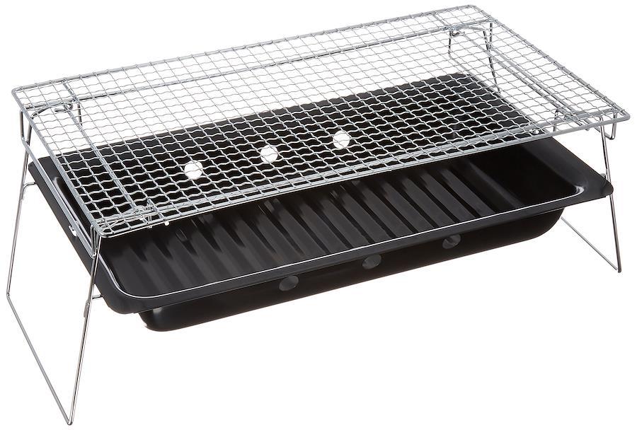 ●軽くて持ち運びに便利●網は脱着式で炭のつぎたしが簡単!●商品サイズ:現品約43×25×17cm・本体重量=約900g●商品材料:本体=鉄(エポキシ樹脂塗装)、スタンド・網=鉄(クロムメッキ)●商品内容収納時=約43×25×6.5cm