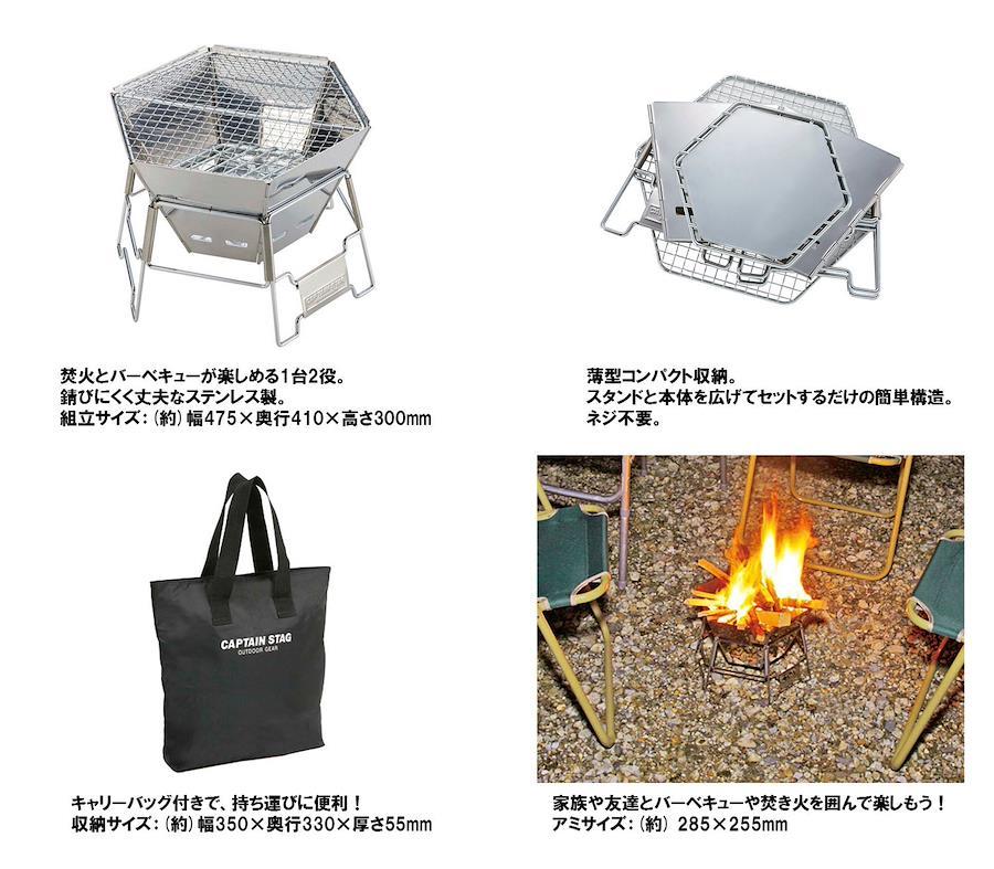 Captain Stag Hexa Stainless Steel Fire Grill (M) M-6498