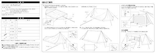 製品サイズ:(約)フライ/380×190×H110cm、インナー/210×90×H100cmパッキングサイズ:(約)66×15×15cm製品重量:(約)3.8kg付属品:ポールキャップ2個、ガイドロープ6本、アルミペグ18本、ポール用収納袋1枚、ペグ用収納袋1枚、キャリーバッグ1枚材質:フライ/ポリエステルリップストップ210T(PU2,000mm)UV加工・撥水加工、インナー/ウォール=ポリエステル185T(通気性撥水加工)、メッシュ=ポリエステルノーシームメッシュ、フロア=ポリスチレンOXF150D(PU3,000mm)、ポール/アルミニウム合金Φ13mm(2本)・16mm(2本)原産国:中国