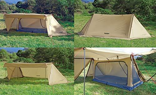 快適装備をプラスした本格的なソロベーステント。前後同デザインを採用することで迷わず設営が可能です。全閉可能。前後に張り出しできるキャノピーを装備。キャノピーセンター部にグロメットを装備。276×220cmのスクエアタープに変形。※セットのポールは片側のみです。フライ+インナーには便利な快適装備。インナー前面は大型、後面にも出入り口を装備。インナー両側面にメッシュ窓付き出入り口を装備。フライ側面は荷物室兼出入り口として使用可能。インナーテント内から荷物室にアクセス可能。インナーテント天井には便利なフック付き。キャノピー側面部分には開け閉めできるウォールパネルを装備。収納・持ち運びに便利なキャリーバッグ付き。特徴【UVカット】【フライ2,000mm防水加工】【フロア3,000mm防水加工】【インナー通気性撥水加工】【インナーテントは吊り下げ式】【インナーテント前面は大型出入り口】【インナーテント出入り口は全部で4箇所】【前後に張り出しできるキャノピー装備】【キャノピー側面は開閉できるウォール装備】【フライ側面は荷物室兼出入り口として使用可能】【軽量で丈夫なアルミニウム製ポール採用】